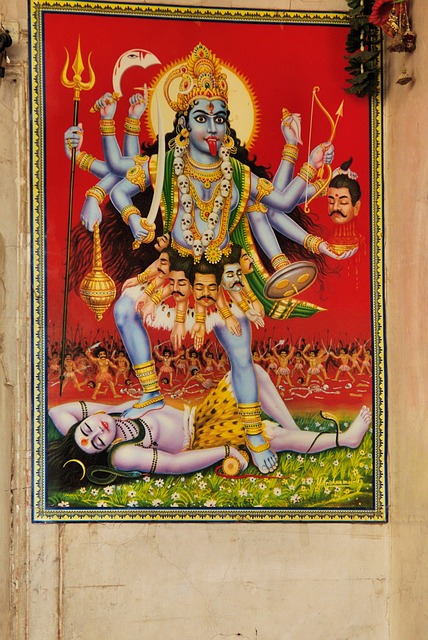 The demon was killed, but Kali became so crazed from his blood that she went on a rampage, killing every man she came across and wearing their heads as a necklace and their limbs as a skirt. She didn’t stop until Shiva, Parvati’s beloved, lied down in front of her. His submission woke her from her rage and she was transformed back into Parvati, goddess of love.