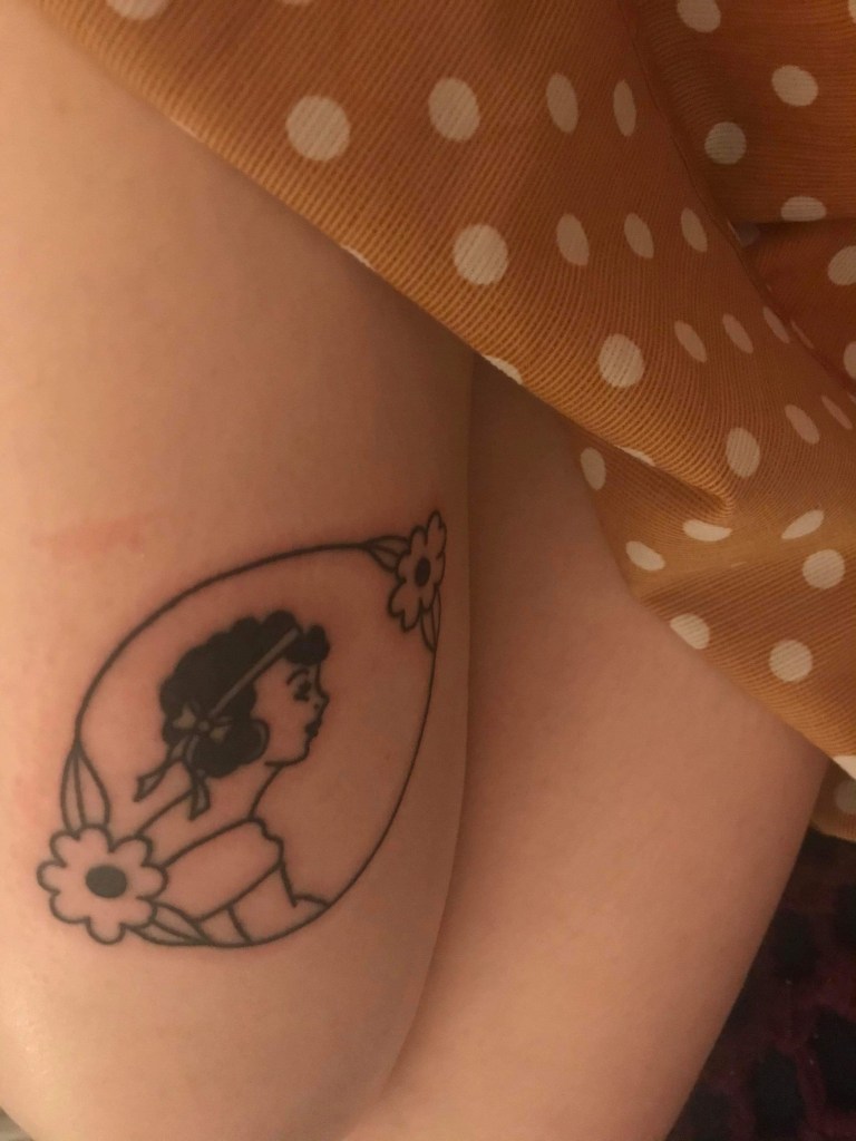 My tattooed skin is a map of where my brain and heart have travelled. The twenty pieces scattered across my body remind me of the day my long-term partner and I got matching tattoos for his twenty-ninth birthday, or my last night in my college town when a new friend drew the Harry Potter glasses on my left pinky using india ink and a sewing needle tied to a pencil. The black-eyed Susan sitting next to the lily on my right shoulder reminds me of my mom, and the four dancers on my left arm, pulled from ee cummings’ erotic poetry collection, helped me come to terms with my bisexuality before I had the language to talk about it.